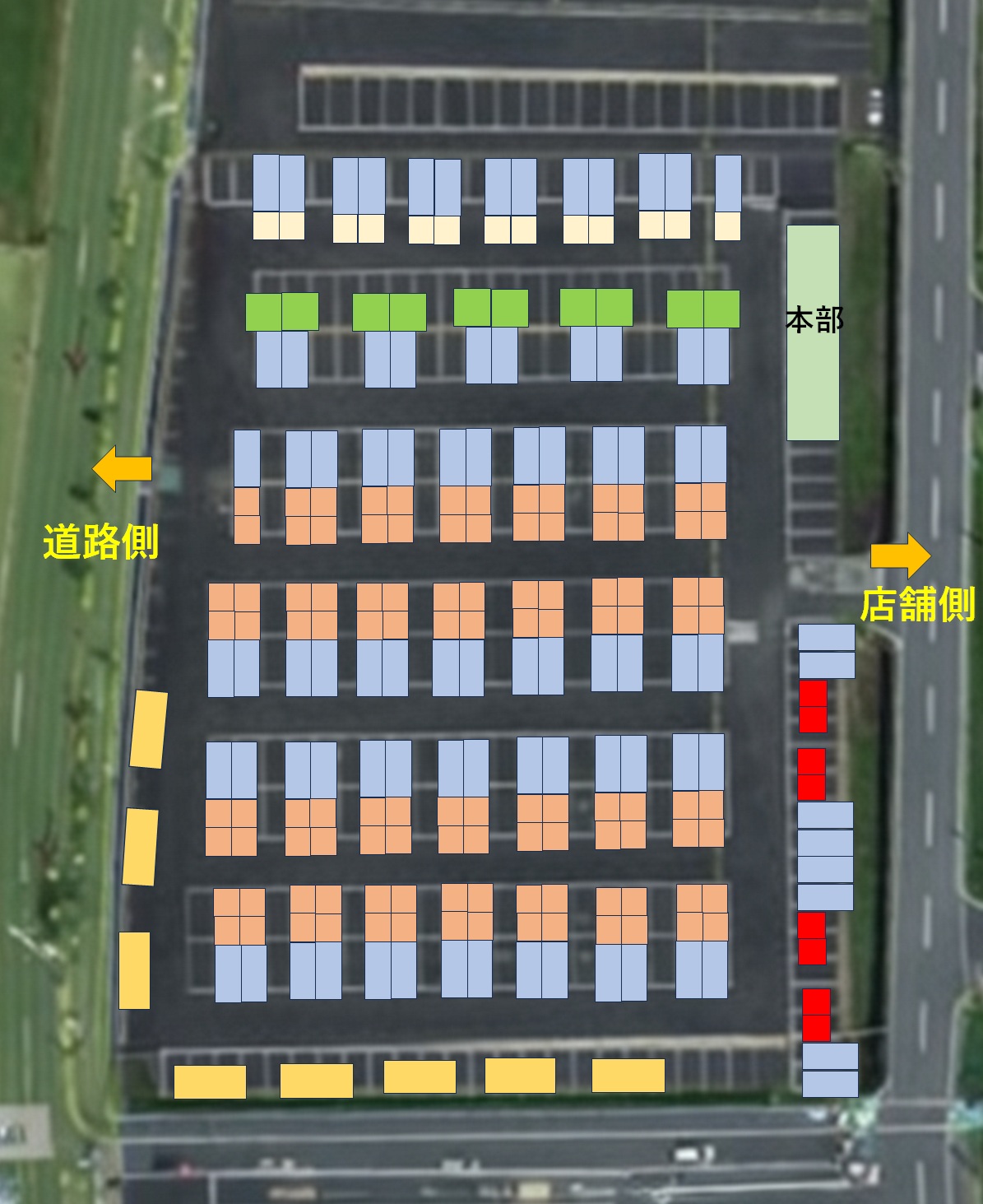 ・物販ブース 5×2.5m上記図面オレンジブース(駐車スペース1ブースに1台のみ) 55ブース